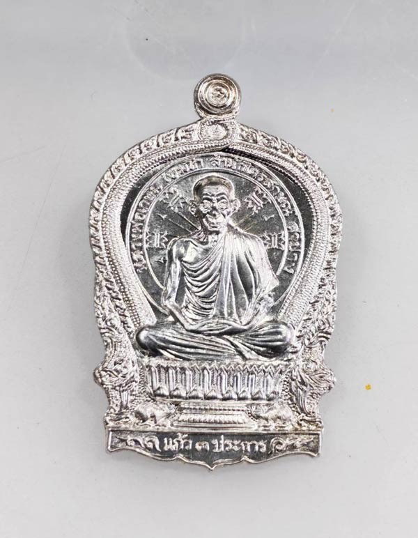เหรียญนั่งพาน 3 ม.ต. เนื้อเงินผิวกระจก หลวงพ่อเกษม เขมโก ปี2537 สวยๆ ไม่ตอกโค๊ตเลข เบาๆ |