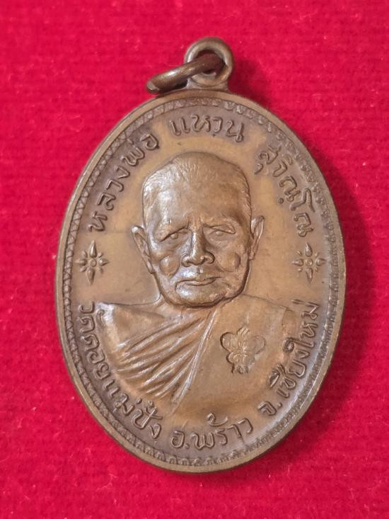 เหรียญหลวงปู่แหวน วัดดอยแม่ปั๋ง รุ่นอนามัยพร้าว เนื้อทองแดง ปี2517 + บัตรรับรอง |