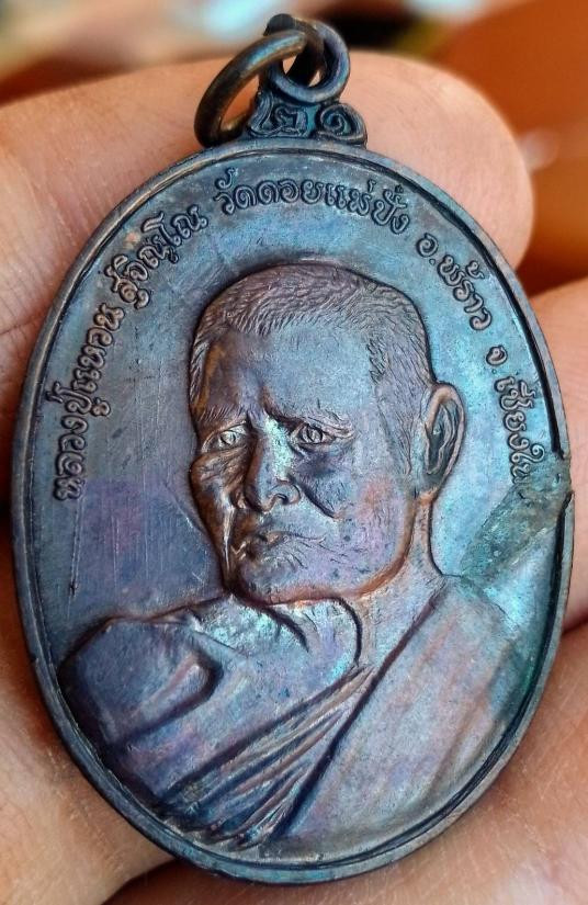 เหรียญหลวงปู่แหวน วัดดอยแม่ปั๋ง รุ่นอนามัยพร้าว เนื้อทองแดง ปี2517 + บัตรรับรอง |