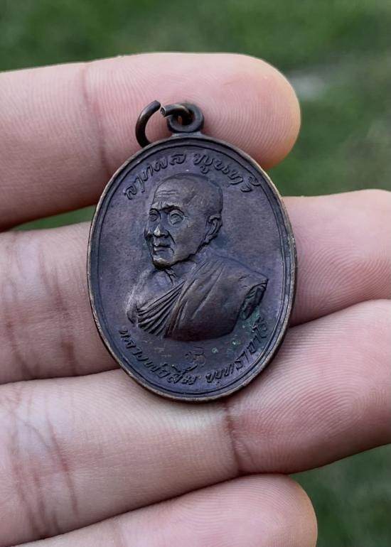 เหรียญยืนรวมใจ หลัง ภ.ป.ร หลวงปู่แหวน สุจิณโณ ปี2519 บล็อกนิยมหลังจุด เนื้อทองแดงผิวไฟ สวยๆครับ |