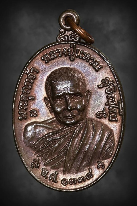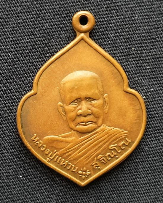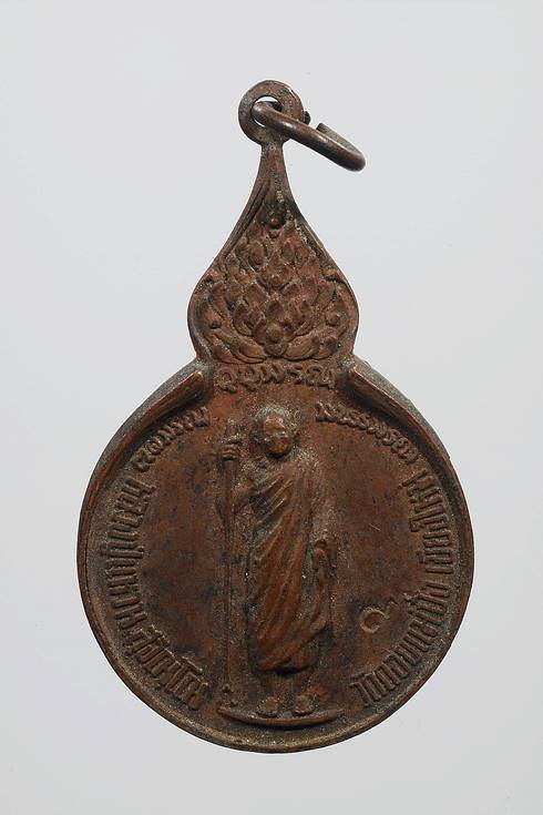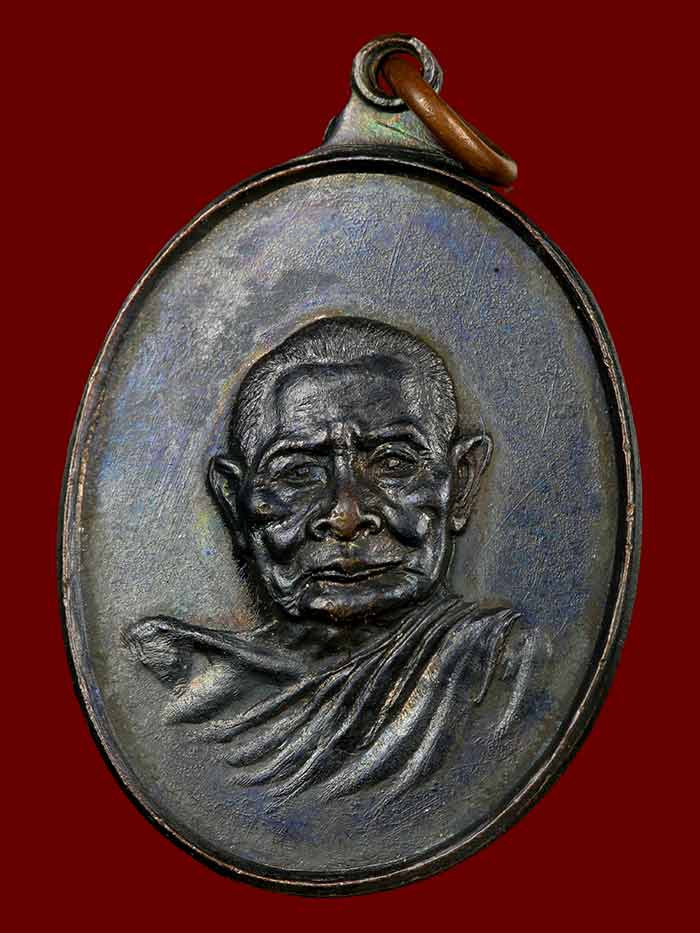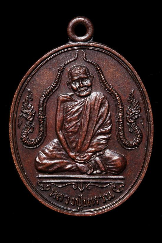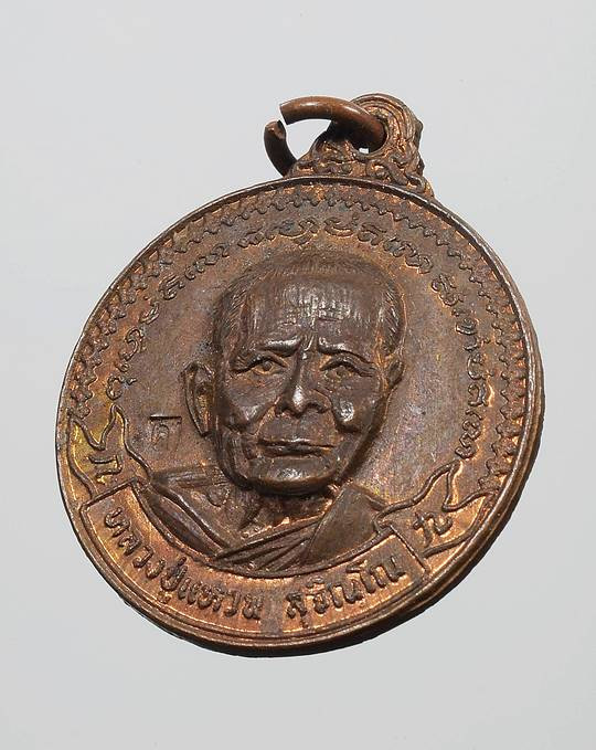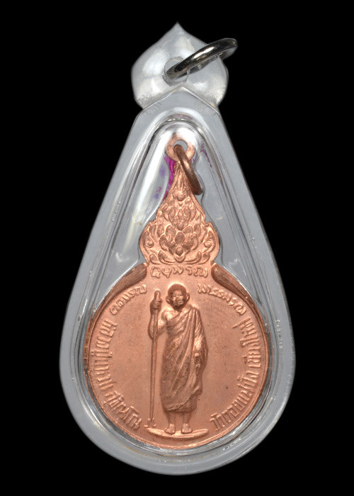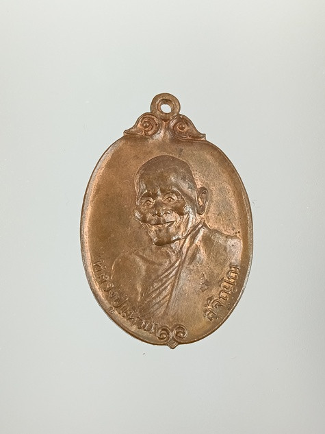 หลวงปู่แหวน สุจิณโณ ปี 2520 หลังปิดตา เนื้อทองแดง |