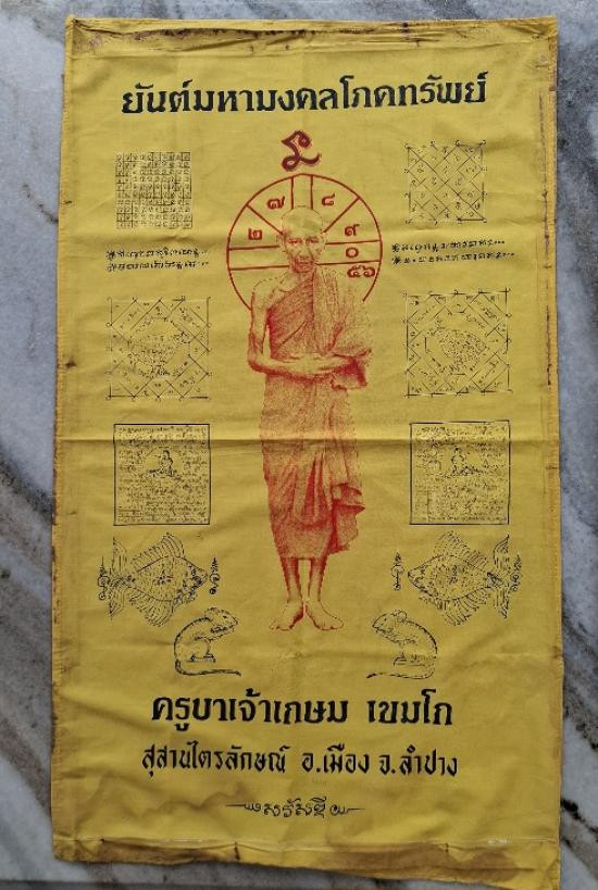 ผ้ายันต์มงคลมหาโภคทรัพย์ หลวงพ่อเกษม เขมโก สุสานไตรลักษณ์ จ.ลำปาง ปี2537 (นิยม ปั้มตรา ปั้มหมายเลข สภาพสวย หายาก) |