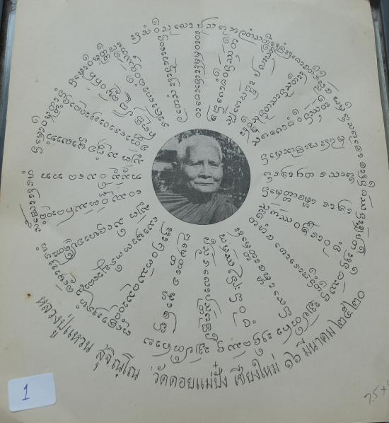 ผ้ายันต์หลวงปู่แหวน สุจิณโณ วัดดอยแม่ปั๋ง อ.พร้าว จ.เชียงใหม่ วาระครบ 90 ปี 16 มีนาคม 2521 สภาพสวย |