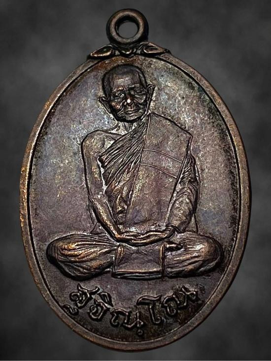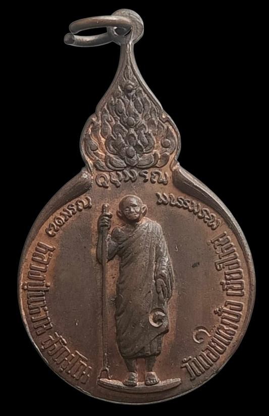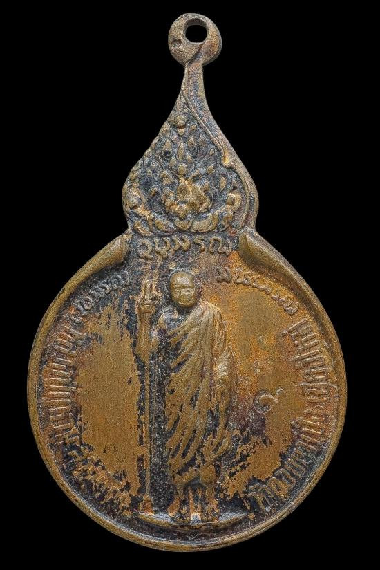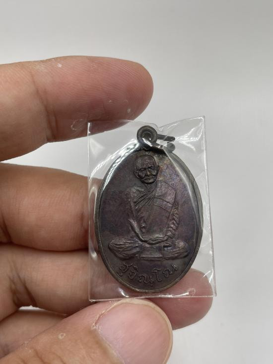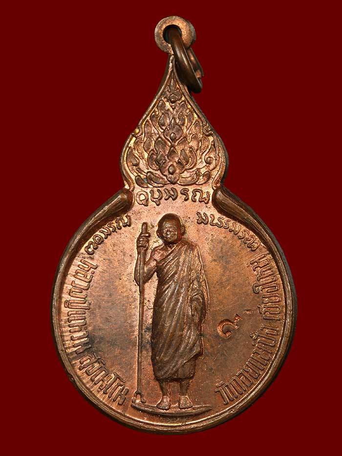 หลวงปู่แหวน สุจิณโณ ปี 2520 หลังปิดตา เนื้อทองแดง |