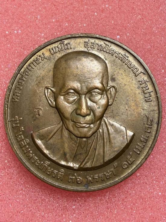 หลวงปู่แหวน วัดดอยแม่ปั๋ง สร้างอุโบสถ กลมเล็ก ปี 2519 เนื้อทองแดง |