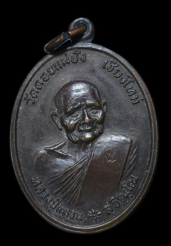 วัดใจ เหรียญหลวงปู่แหวน สุจิณุโณ วัดดอยแม่ปั๋ง ปี 2518 รุ่นรวมใจ มีโต๊ต เนื้อทองแดงผิวไฟ จังหวัดเชียงใหม่ |