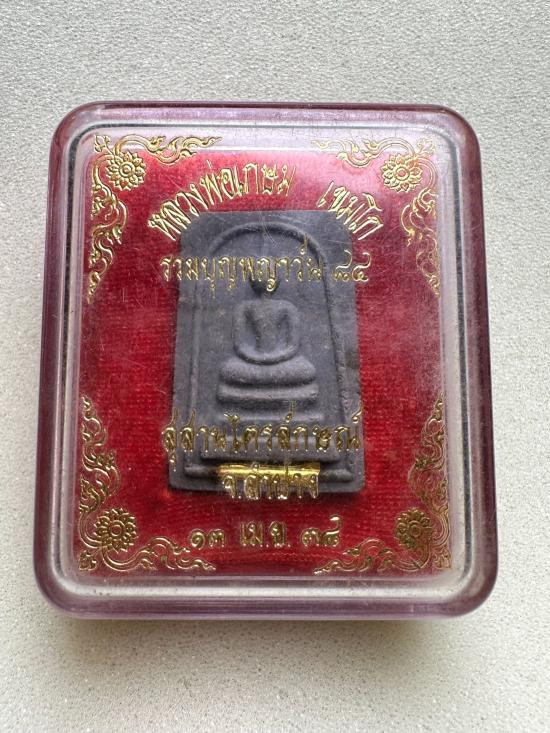 พระสมเด็จพิมพ์พระประธาน หลวงพ่อเกษม เขมโก ฝังตะกรุดทองคำ เนื้อผงธูปเทียนชัย9พิธี หลังยันต์นะ ตอกหมายเลข1387 รุ่นรวมบุญพ ญาวัน84 ปี2538 พร้อมกล่อง |