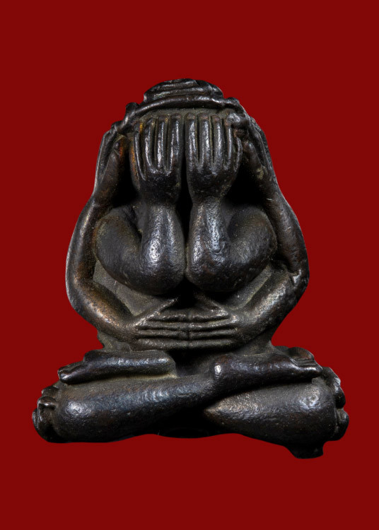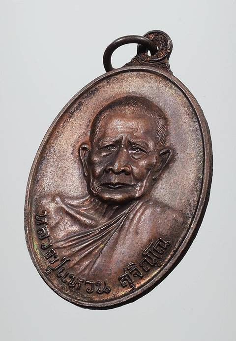 หลวงปู่แหวน สุจิณโณ ปี 2520 หลังปิดตา พิมพ์ใหญ่ เนื้อทองแดง |