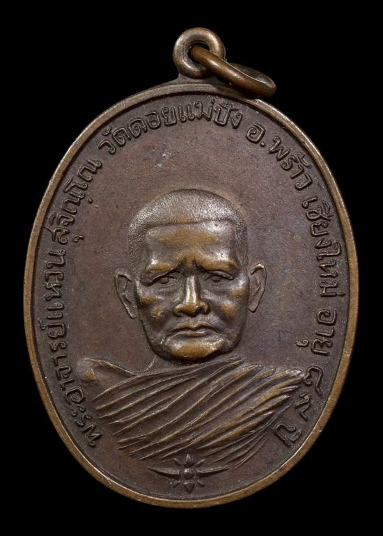 เหรียญอนามัยพร้าว หลวงปู่แหวน สุจิณฺโณ วัดดอยแม่ปั๋ง จ.เชียงใหม่ ปี 2517 |