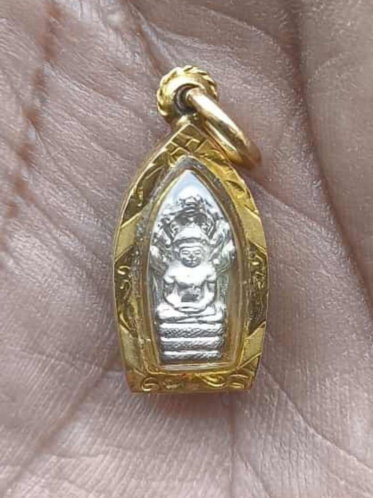วัดใจ หลวงพ่อเกษม ปรกมะขามเนื้อเงิน เลี่ยมทองแท้ |
