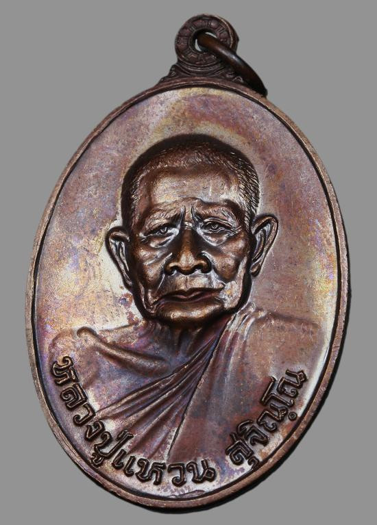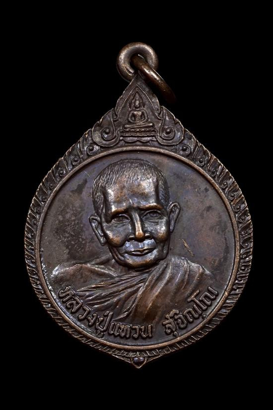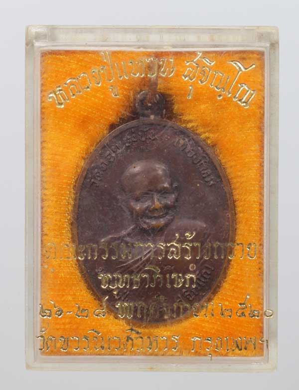 หลวงปู่แหวน สุจิณโณ ปี 2520 หลังปิดตา พิมพ์ใหญ่ เนื้อทองแดง |