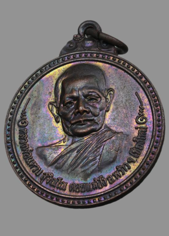 เหรียญหลวงปู่แหวน สุจิณฺโณ วัดป่าเจริญธรรม เชียงใหม่ ปี2517 เนื้อทองแดง ตอกโค๊ต |