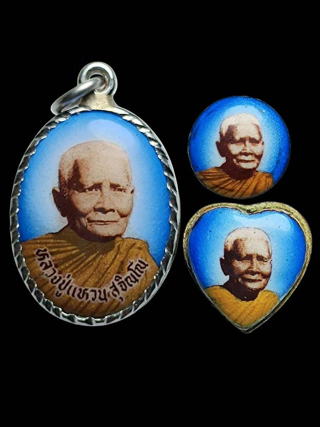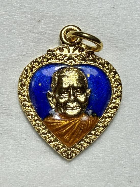 เหรียญหลวงปู่แหวน รูปหัวใจ กะไหล่ทองลงยาครับ |