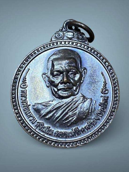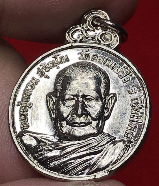 เหรียญ หลวงปู่แหวน วัดดอยแม่ปั๋ง รุ่นเมตตาสร้างเจดีย์ พะเยา ปี 2520 พิมพ์ใหญ่ ม มี ขีด...กะไหล่เงิน |