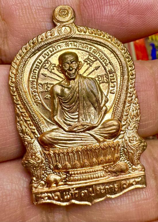 เหรียญ นั่งพาน 3 มต เมตตา มีสตางค์ ไม่ตาย หลวงพ่อเกษม เขมโก เนื้อทองฝาบาตร ปี2537 พร้อมกล่องเดิม่ |