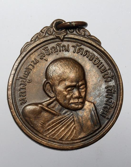 เหรียญหลังเจดีย์หลวงปู่แหวน วัดดอยแม่ปั๋งพ.ศ.2517 เนื้อนวะโลหะ สวยมาก |