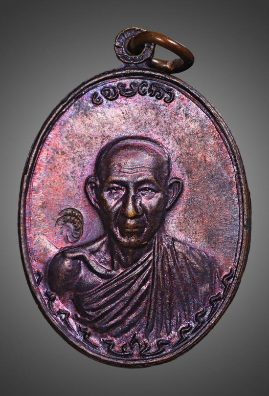 เหรียญรางปืน หลวงปู่แหวน สุจิณโณ เนื้อทองแดง ผิวไฟ ตอกโค๊ต ปี2517 พร้อมบัตรG |