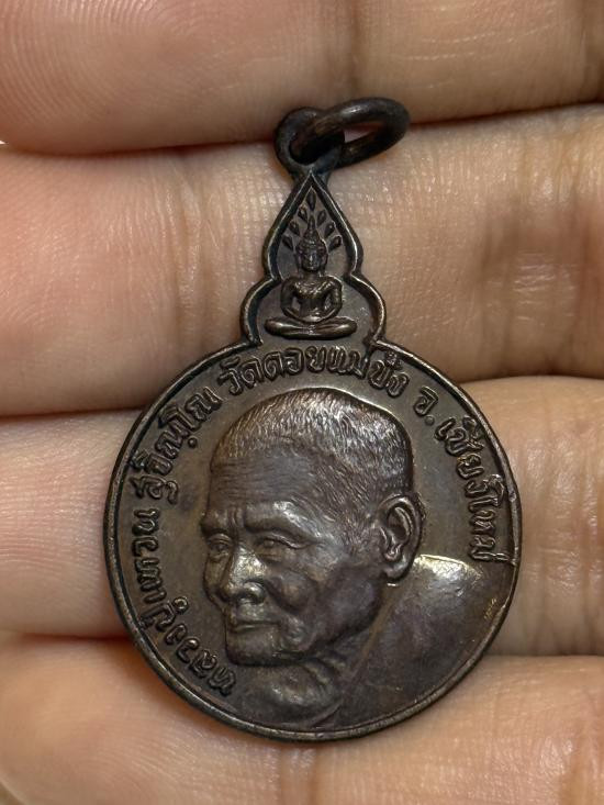 เหรียญกลม สร้างเจดีย์ 84 หลวงปู่แหวน เนื้อนวะโลหะ วัดดอยแม่ปั๋ง ปี2517 |