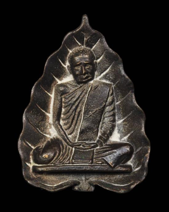 เหรียญหล่อรูปเหมือน พิมพ์ใบโพธิ์ ปี 2517 หลวงปู่แหวน สุจิณฺโณ เนื้อนวะ |