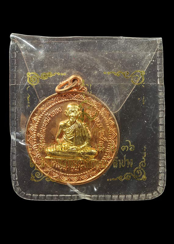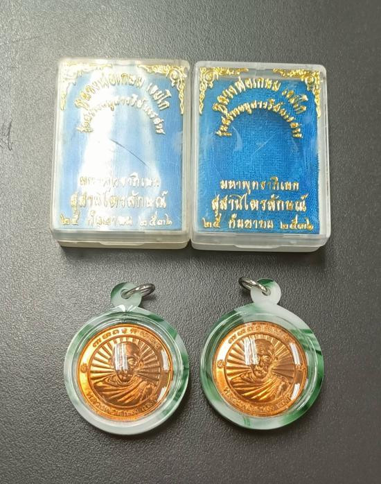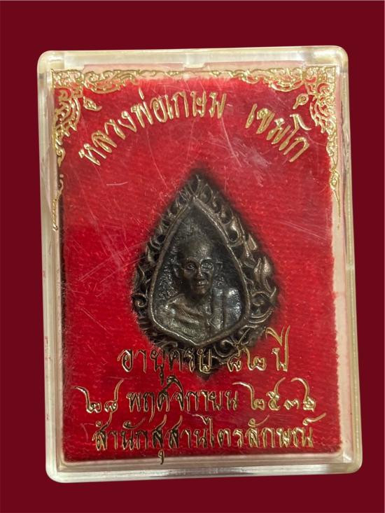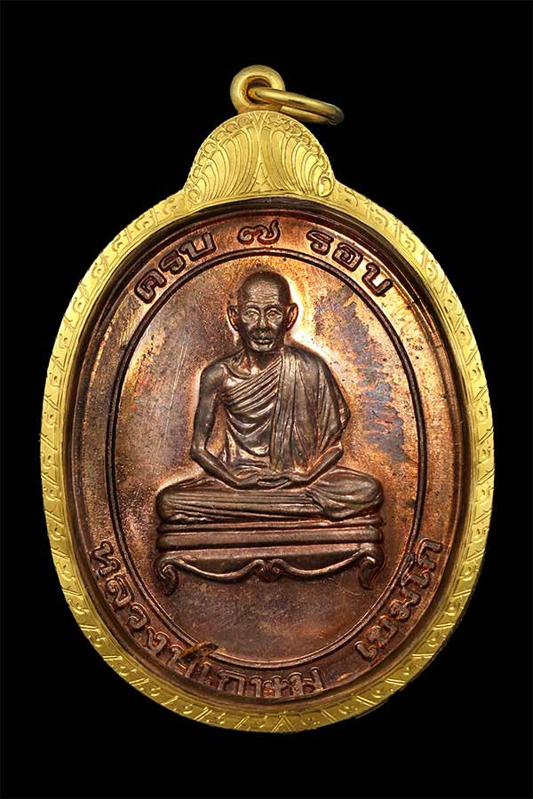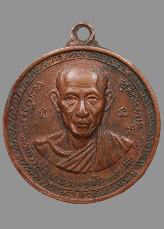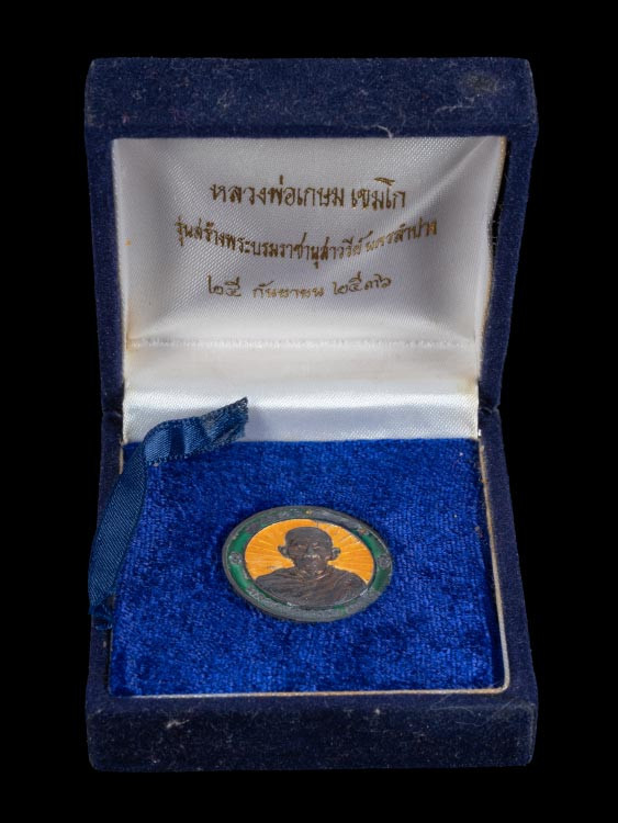 เหรียญหลวงพ่อเกษม สำนักสุสานไตรลักษณ์ รุ่นครบ 7 รอบ ปี 2538 เนื้อทองแดง ตอกโค๊ด พร้อมเลี่ยมทองคำ |