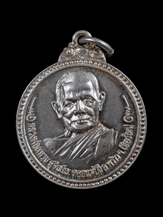 เหรียญหลวงปู่แหวน ออกวัดพระศรีมหาธาตุ กทม. ปี 2518 เนื้อเงิน ตอกโค๊ด พร้อมเลี่ยมเงิน |