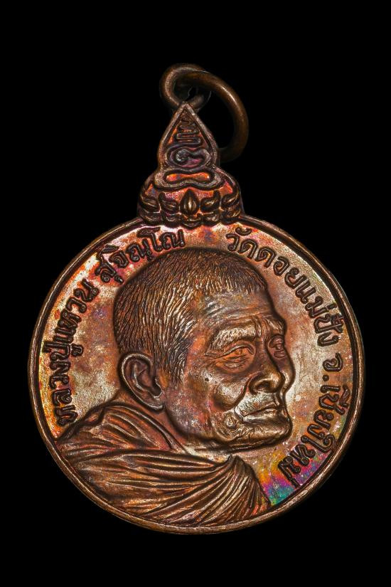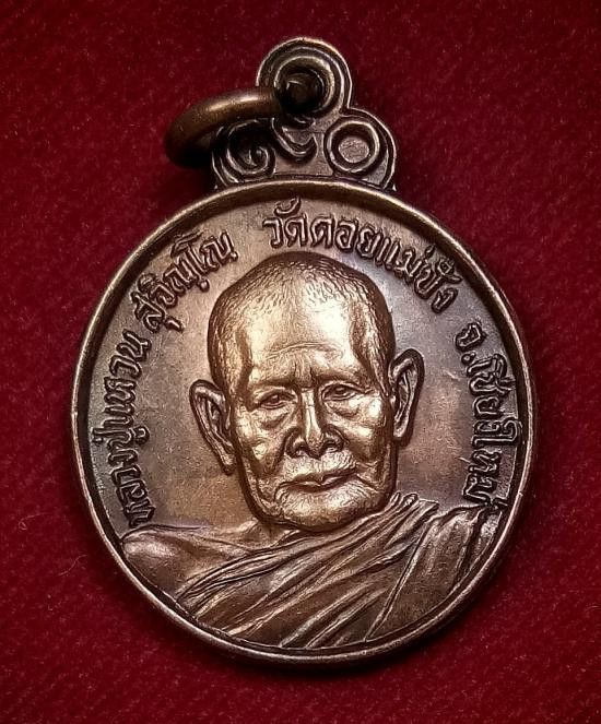 เหรียญบาตรน้ำมนต์ฉลองอายุ 96 ปีหลวงปู่แหวน สุจิณโณ วัดดอยแม่ปั๋ง จ.เชียงใหม่ 16 มีนาคม 2526 จัดสร้างโดยมูลนิธิหลวงปู่แหวน เนื้อโลหะผสม ขนาด 5.1 เซนติเมตร |