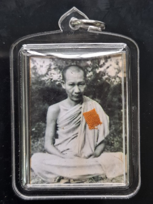 รูปภาพหลวงพ่อเกษม เขมโก หลังปั้มหมึก ติดจีวร ปี2518 ขนาด 1 นิ้ว (1) |