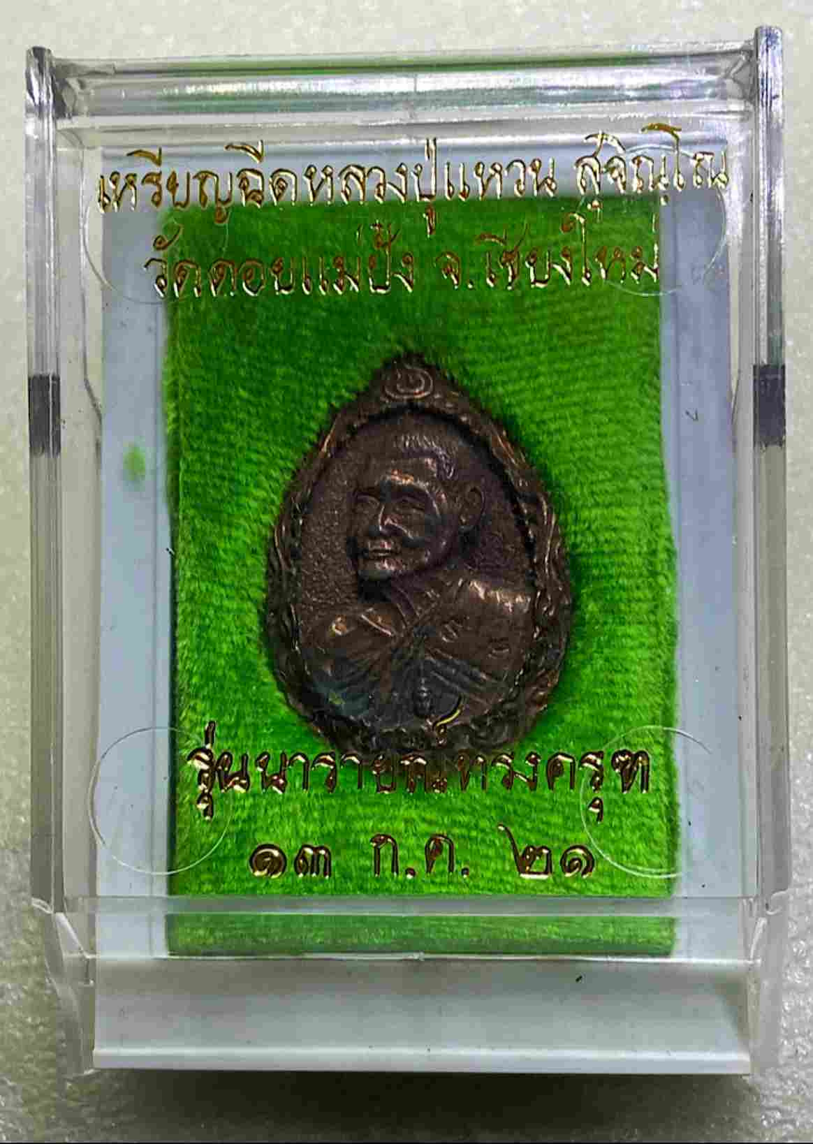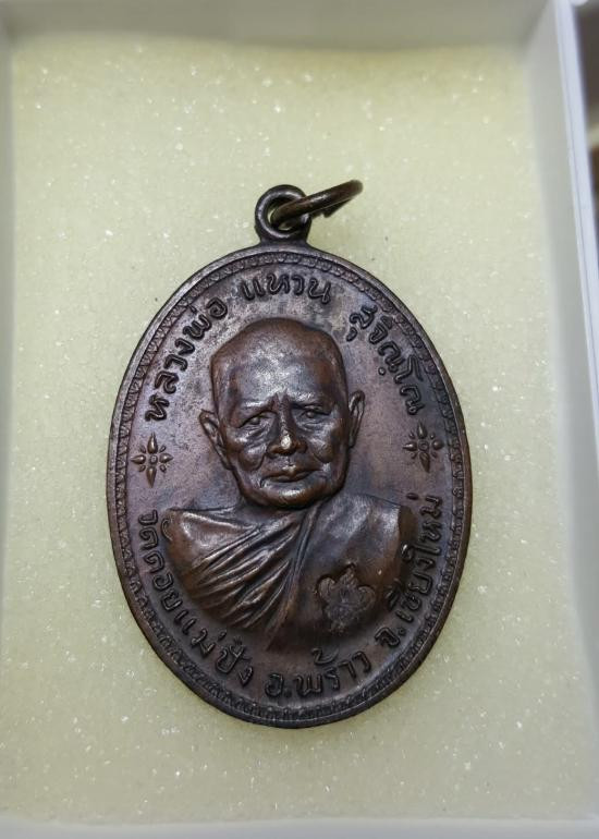 เหรียญรุ่นสร้างโรงพยาบาล หลวงปู่แหวน วัดดอยแม่ปั๋ง พิมพ์หลังภปร. ปี2521 พระผิวเดิมๆ |