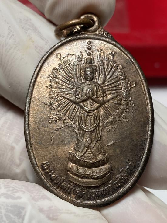 เหรียญพระอวโลกิเตศวรฯพระแม่กวนอิมพันมือ วัดประตูป่อง หลวงพ่อเกษม เขมโกอธิษฐานจิต ปี 2536 เนื้อนวโลหะ |