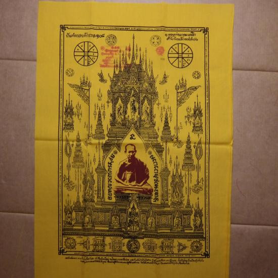 ผืนใหญ่..ขนาด19 X 29 นิ้ว... ผ้ายันต์ครอบจักรวาล 108 หลวงพ่อเกษม รุ่นพุทธคุณ ปี2538 เลข 539 ... 68.12.17 |