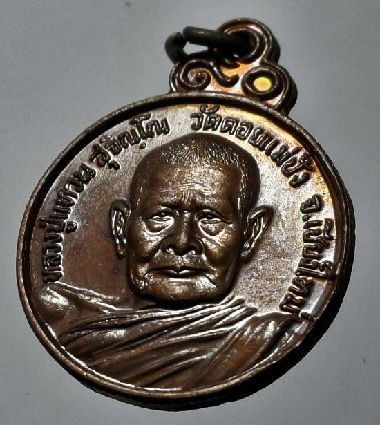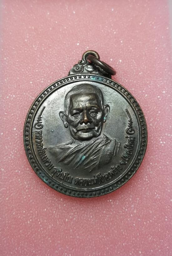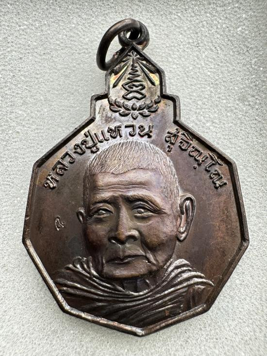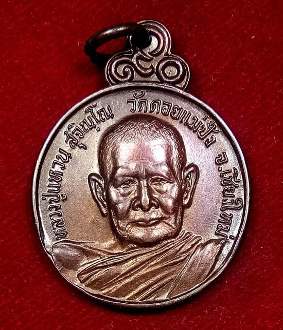 เหรียญหลวงปู่แหวน สุจิณฺโณ วัดป่าเจริญธรรม เชียงใหม่ ปี2517 เนื้อทองแดง ตอกโค๊ต |