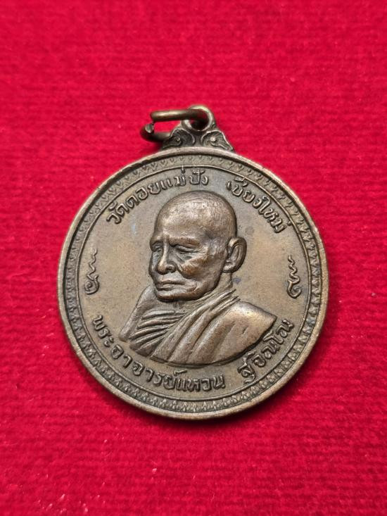 เหรียญหลวงปู่แหวน สุจิณฺโณ วัดป่าเจริญธรรม เชียงใหม่ ปี2517 เนื้อทองแดง ตอกโค๊ต |