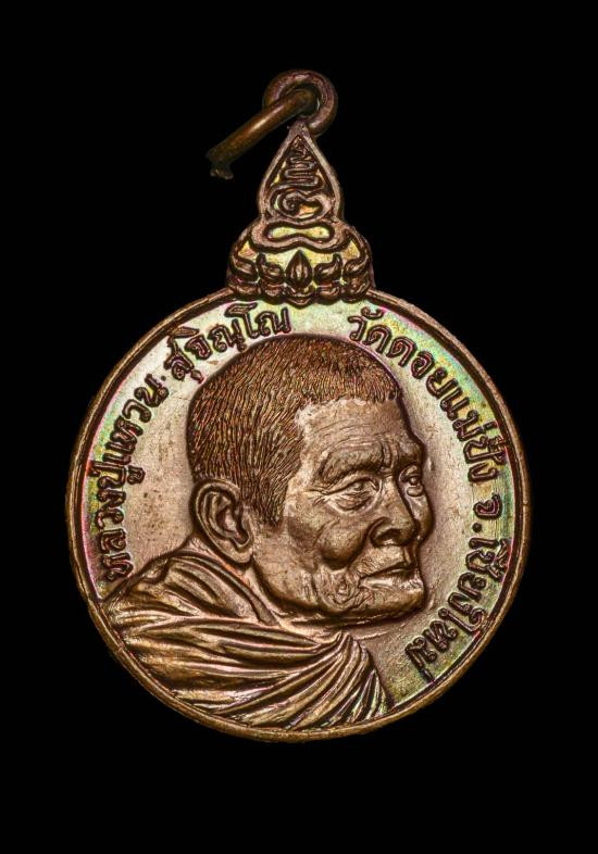 เหรียญหลวงปู่แหวนหลังเจดีย์พ.ศ.2517เนื้อนวะโลหะ |