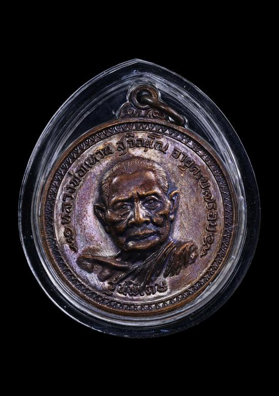 เหรียญหยดน้ำหลังพระพุทธ ภปร หลวงปู่แหวน ปี2525 (บล็อกกองษาปณ์) เนื้อนวะ |