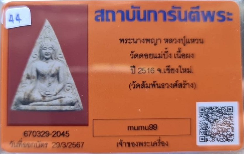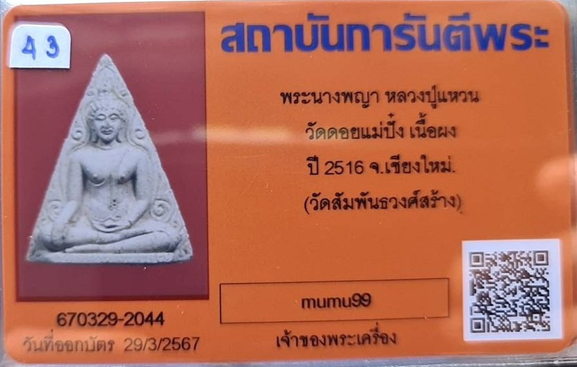 พระผงซุ้มพระพุทธชินราช หลวงปู่แหวน สุจิณโณ วัดดอยแม่ปั๋ง ปี พ.ศ ๒๕๑๖ ( หายาก ) |