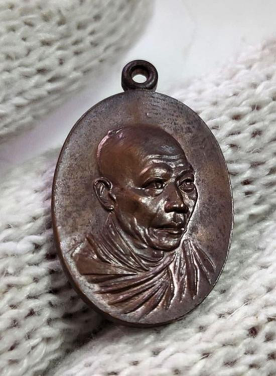 เหรียญรางปืน หลวงปู่แหวน สุจิณโณ เนื้อทองแดง ผิวไฟ ตอกโค๊ต ปี2517 พร้อมบัตรG |