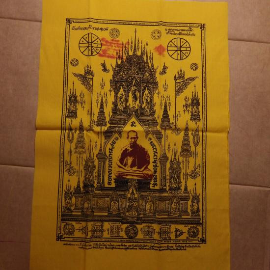 ผืนใหญ่..ขนาด19 X 29 นิ้ว... ผ้ายันต์ครอบจักรวาล 108 หลวงพ่อเกษม รุ่นพุทธคุณ ปี2538 เลข 552 ... 68.11.26 |