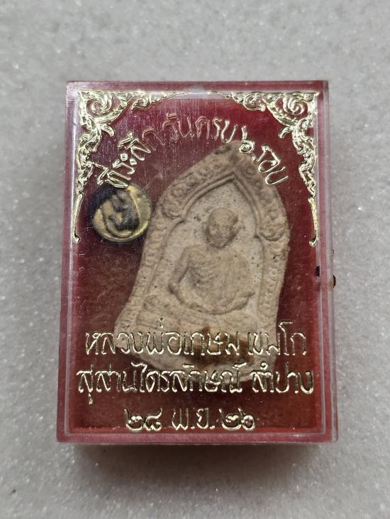 เคาะเดียวแดง สมเด็จเสาร์ห้ามหาลาภ หลวงพ่อเกษม ปี37 เนื้อผงใบลาน พร้อมกล่องเดิมๆ องค์ที่ 2 |