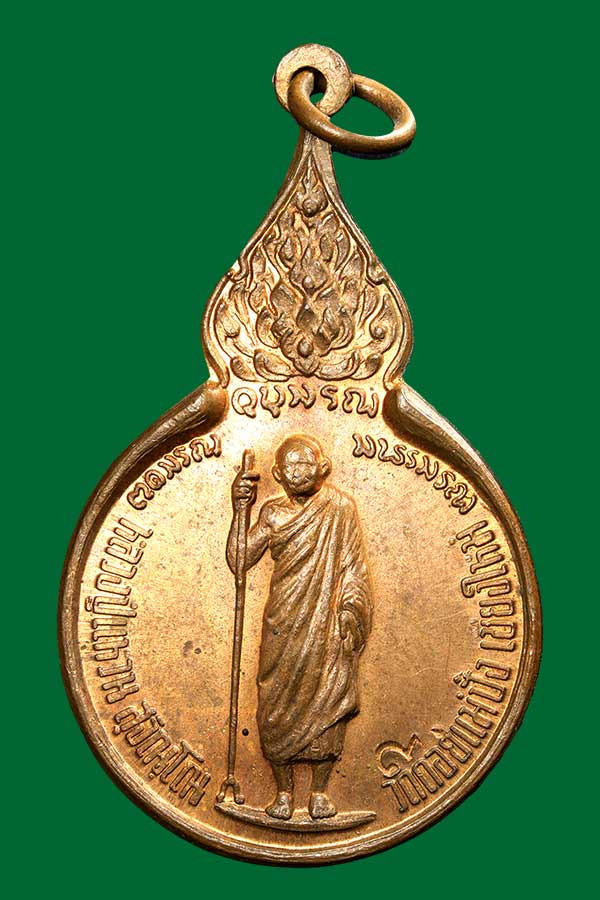 วัดใจเคาระเดียวแดง เหรียญยืนถือไม้เท้า รุ่นรวมใจ ( 5 แชะ ) หลวงปู่แหวน วัดดอยแม่ปั๋ง จ.เชียงใหม่ ปี 2518 B |