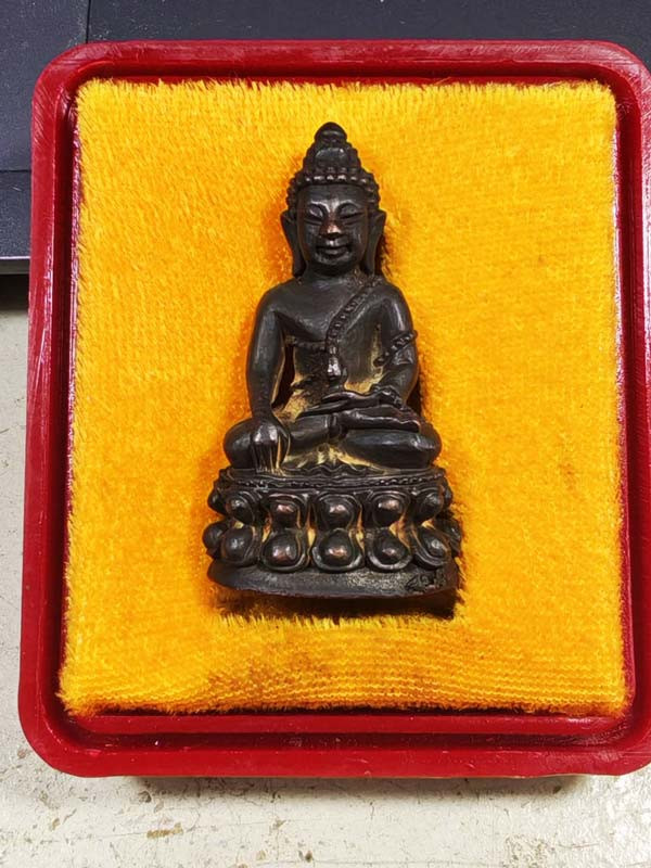 รูปหล่อเหมือนนั่งสมาธิ รุ่น คูณทวี พระชุดของขวัญพิเศษ ( เนื้อนวโลหะ ) ขณะนั้นจำพรรษา วัดสระแก้ว พ.ศ.2527 ( กล่องเดิม ) |
