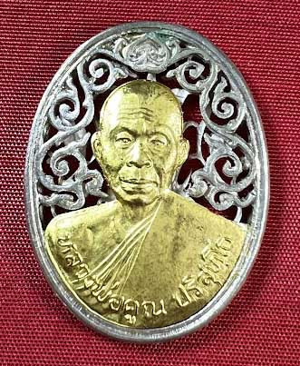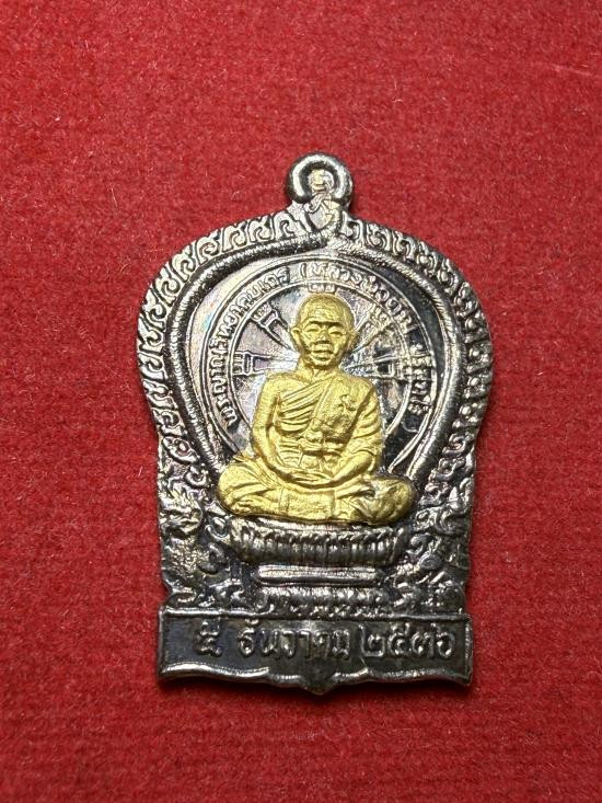 เหรียญลายฉลุ หลัง สก. หลวงพ่อคูณ วัดบ้านไร่ เนื้อเงิน หน้ากากทองคำแท้ ปี 2536 |