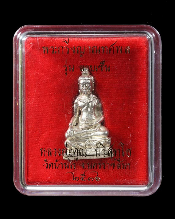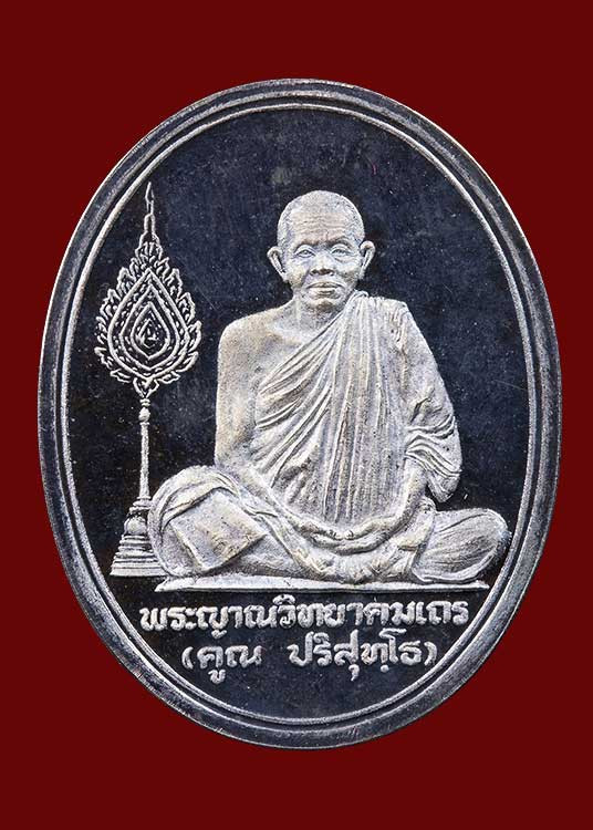 วัดใจ เหรียญนั่งพาน วัดบ้านคลอง หลวงพ่อคูณ ปี2537 เนื้อเงิน สวยเดิมคากล่อง พร้อมบัตรจีพระ |