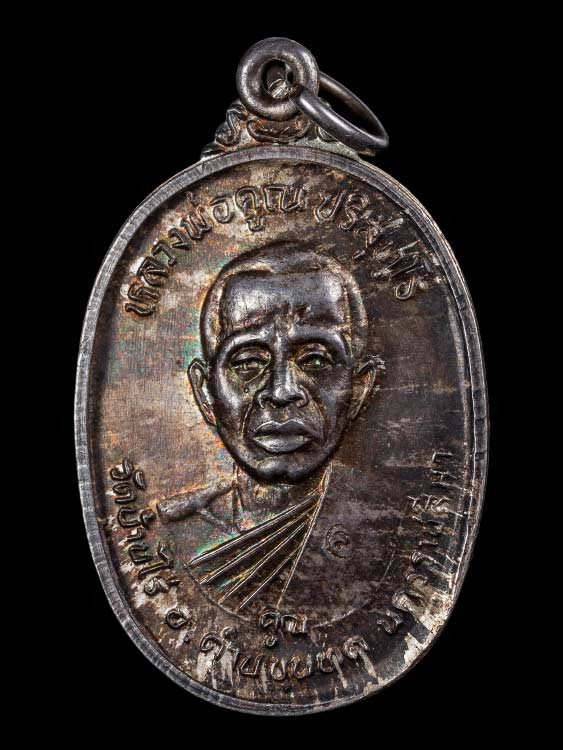 ปรกหลวงพ่อคูณ รุ่นเสาร์ 5 คูณพันล้าน ปี 37 เนื้อเงิน ผิวเดิม เลี่ยมกรอบทองคำแท้ 51.9% |