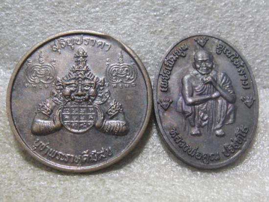 เหรียญ ศิษย์ สปจ.นครราชสีมา สร้างถวาย ( เนื้อทองแดง ) พ.ศ.2532 ( รับพระ 2 เหรียญ ) |
