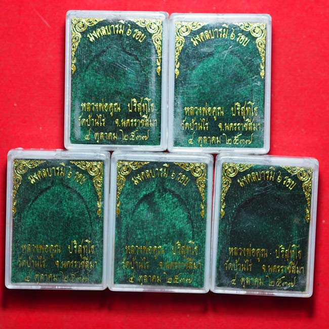 พระชุด พระผงยาสูบ รุ่นพิเศษ ฝังเม็ดกริ่งทุกองค์ หลวงพ่อคูณ ปริสุทฺโท วัดบ้านไร่ อ.ด่านขุนทด จ.นครราชสีมา สร้างปี พ.ศ.2536 กริ่งดังทุกองค์ หายาก กล่องเดิม |