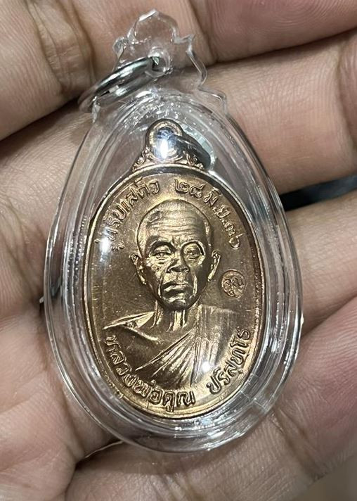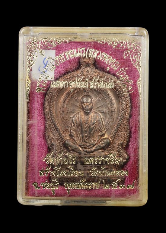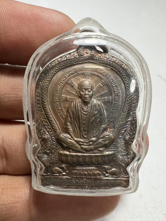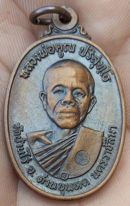 เหรียญนั่งพาน บ้านคลอง หลวงพ่อคูณ วัดบ้านไร่ ปี 2537 เนื้อทองแดง เลี่ยมเงินกันน้ำขึ้นมือหนาๆ แดงเคาะแรก |