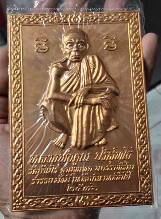 แผ่นปั้มรูปเหมือน หลวงพ่อคูณ ขนาด 3.5x5.0 นิ้ว เนื้อทองแดง ถุงเดิม ปี36 |