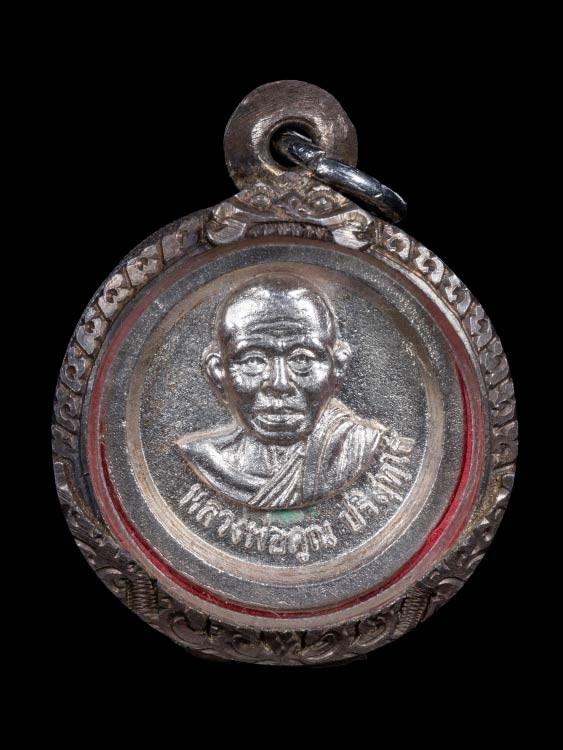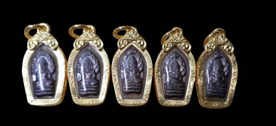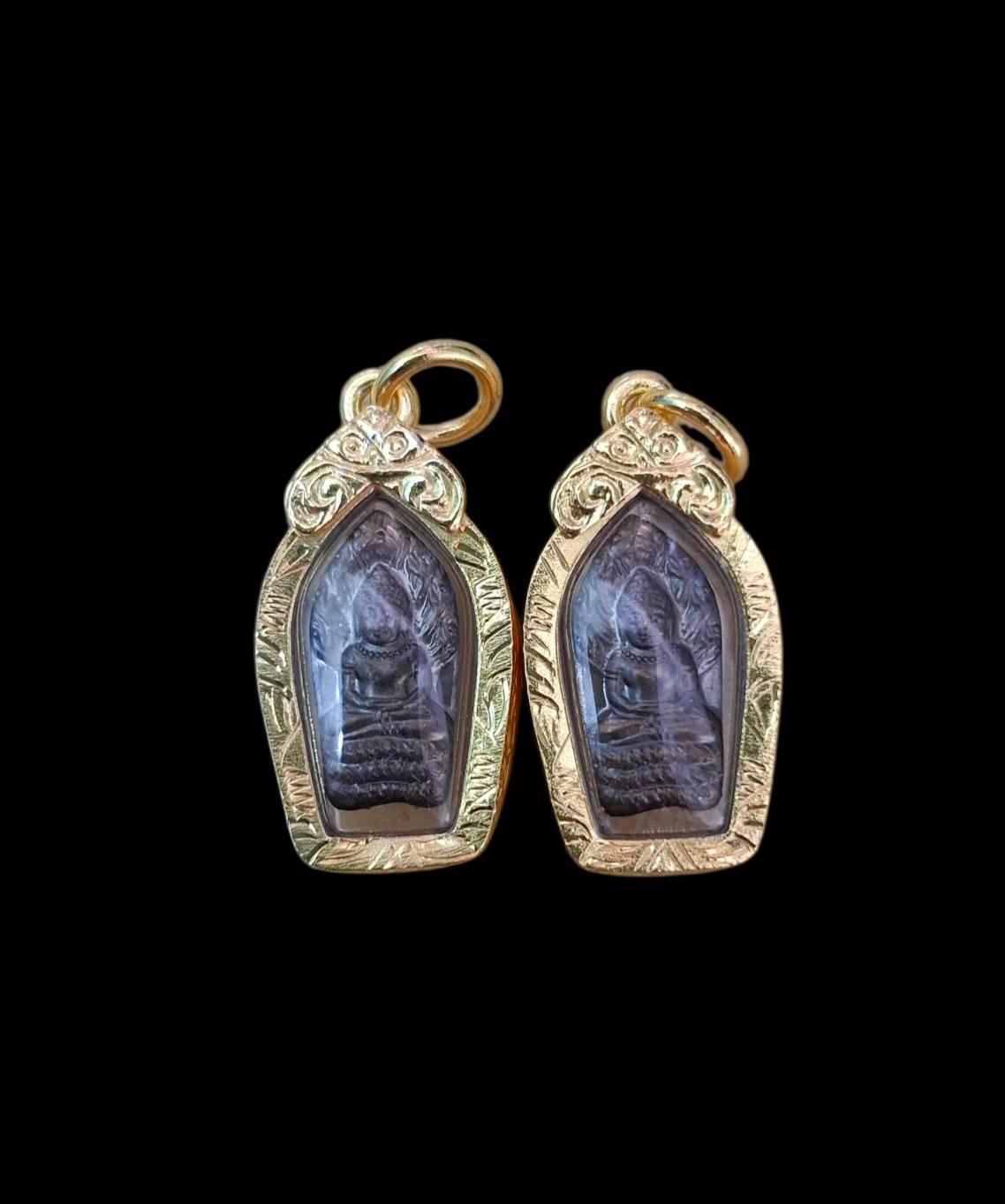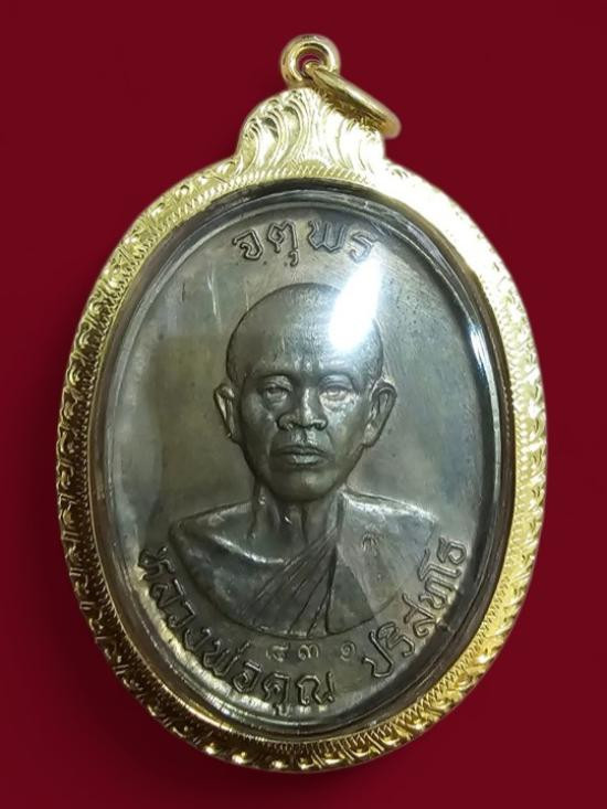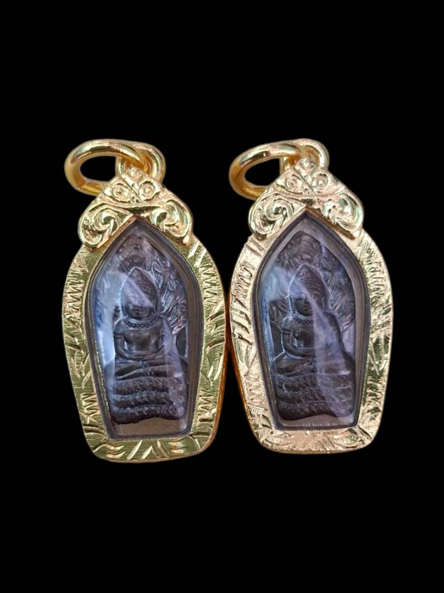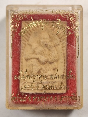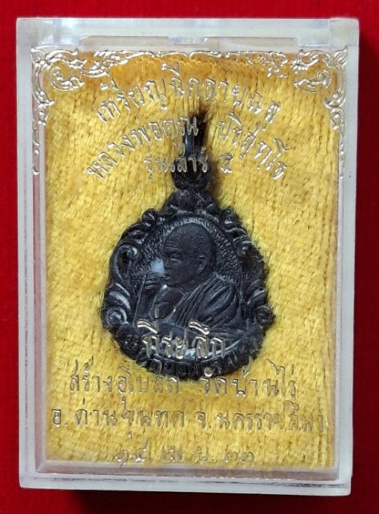 หลวงพ่อคูณ วัดบ้านไร่ รุ่นจตุพรหลังยันต์ เนื้อ นวะ+เลี่ยมทองคำแท้พร้อมใช้ครับ |