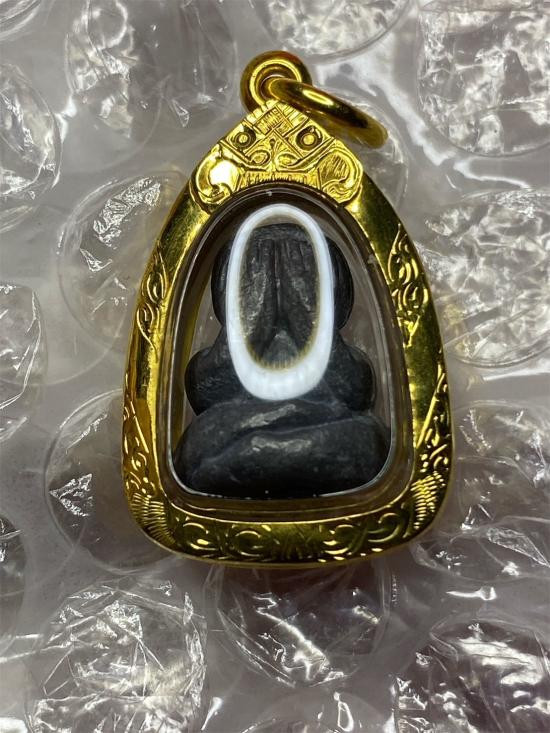 พระปิดตาสารพัดดี 3 ไตรมาส หลวงพ่อคูณ ปริสุทโธ ออกวัดบ้านคลอง ปี 2538 เนื้อหลังคาโบส์ถ ฝังตะกรุด ติดจีวร ไม่มีปรก |