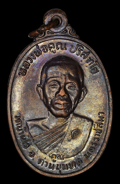 หลวงพ่อคูณ วัดบ้านไร่ รุ่น ทหารเสือ ส.ก ปี 2536 เนื้อทองแดงรมดำ |
